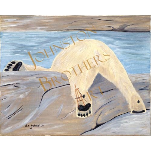 Print of Fishing Polar Bear. Original was painted with acrylics on Canvas.