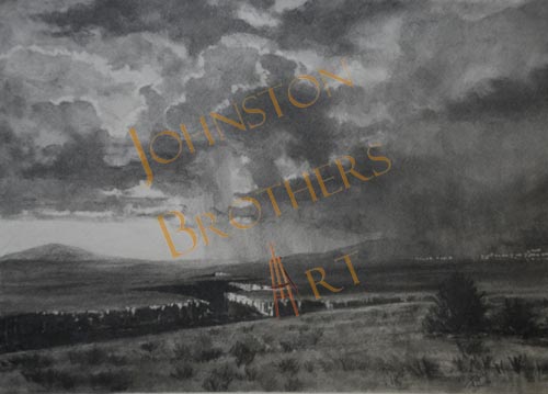 Print of Rain 1 depicting a southwest rainstorm. Original was charcoal on paper. Prints are on vellum.