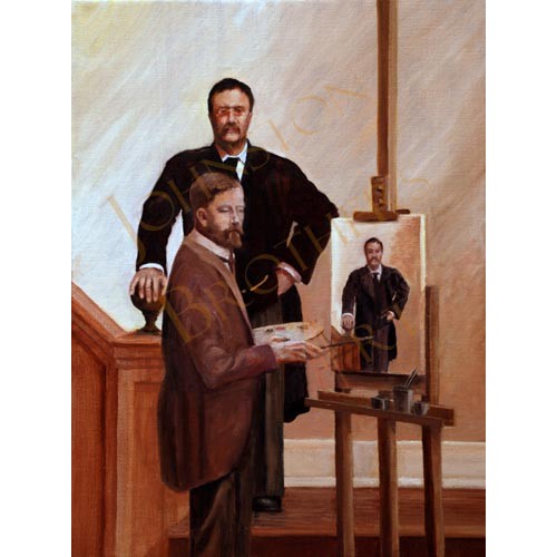 Print of T. Roosevelt. Original was painted in oils on canvas. The original was used as an illustration in a book of Presidential poems.