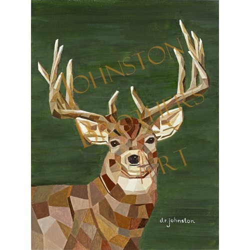 Print of Mule Deer. Original was painted with acrylics on Canvatex in an expressionist style.